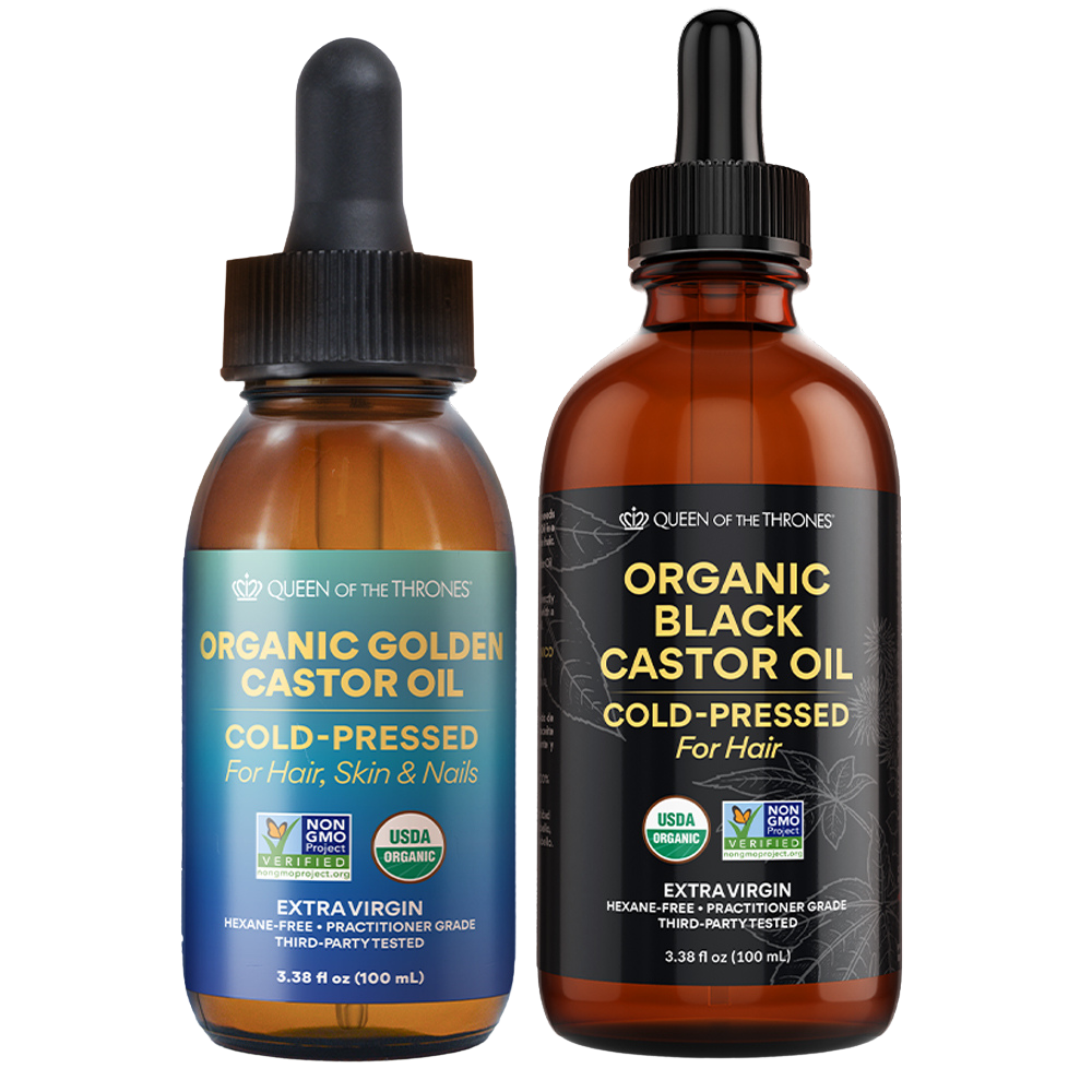 Queen of the Thrones® Organic Golden Castor Oil is USDA Organic & Non-GMO Project Verified. That means no pesticides, no herbicides and no GMOs. That’s our promise.