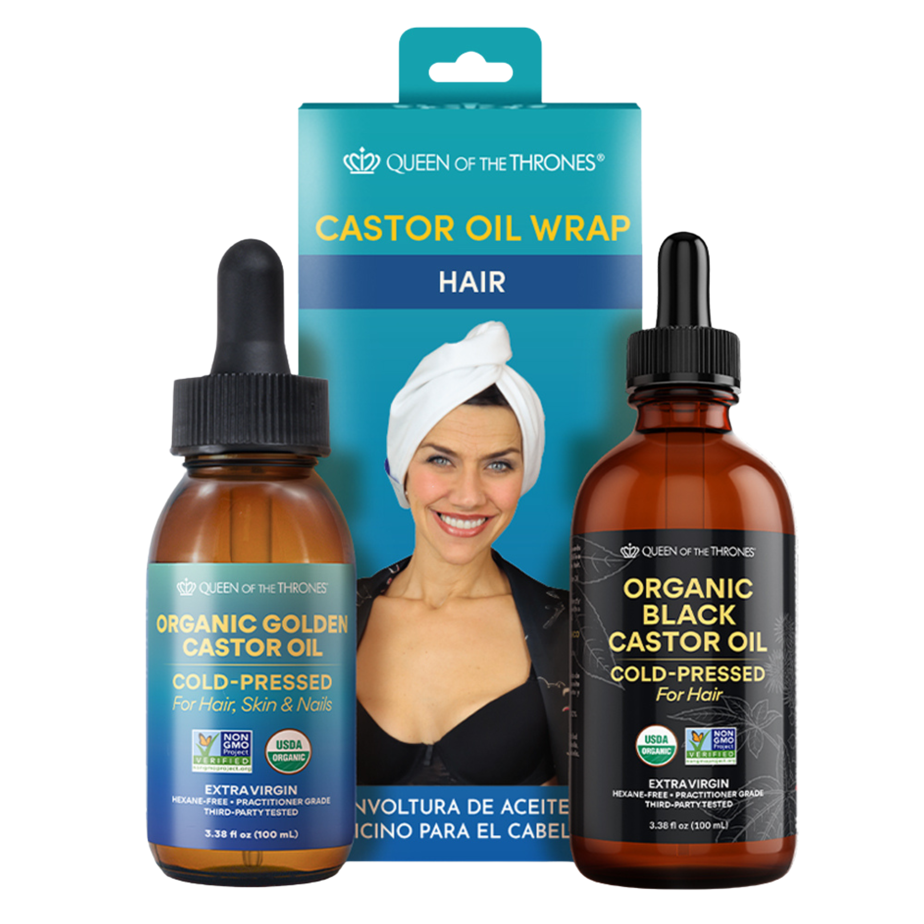 You can enhance this practice and support a less-mess experience with the Queen of the Thrones® Castor Oil Beauty Hair Wrap.