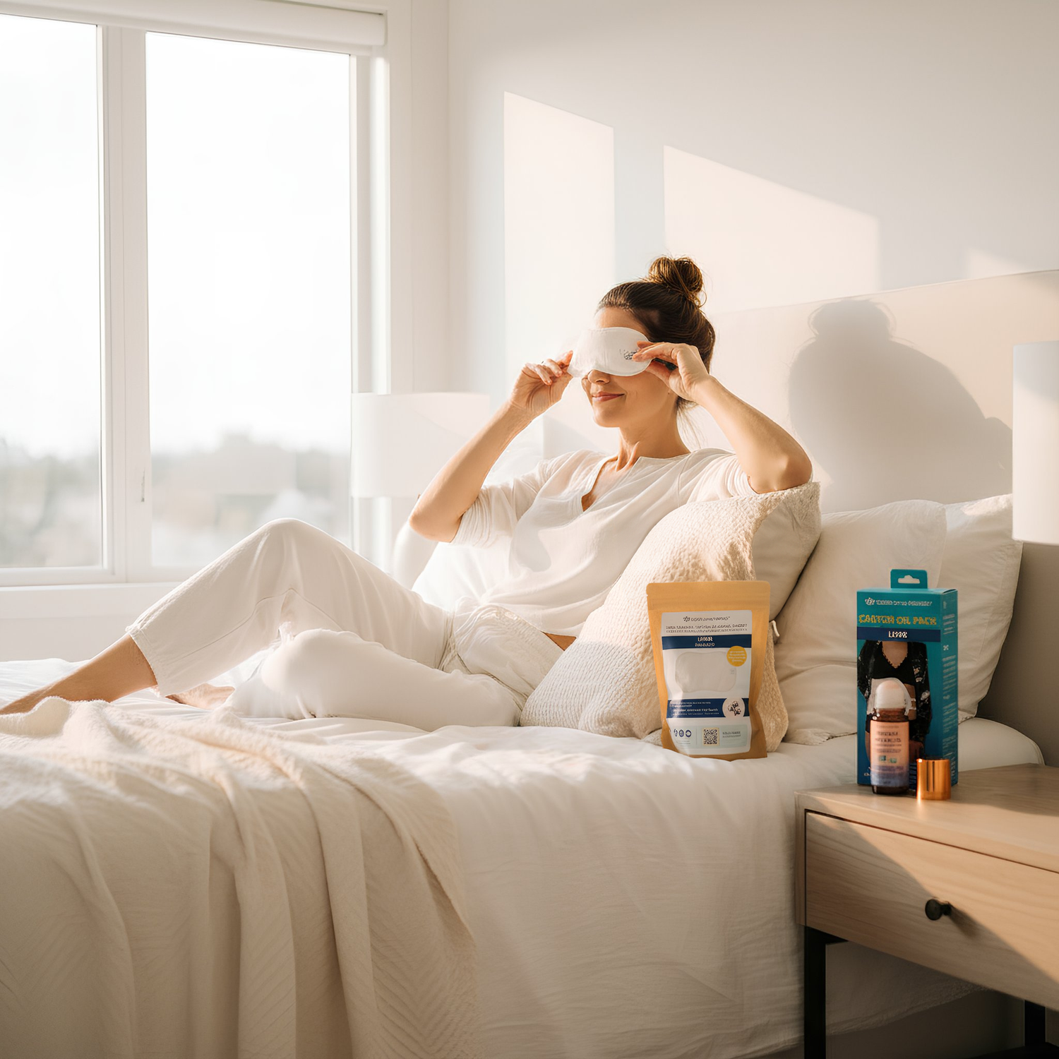 Place the Organic Cotton Eye Mask over your eyes. Breathe deeply and visualize yourself in perfect alignment — body, mind, and spirit unified in wellness and inner balance.
